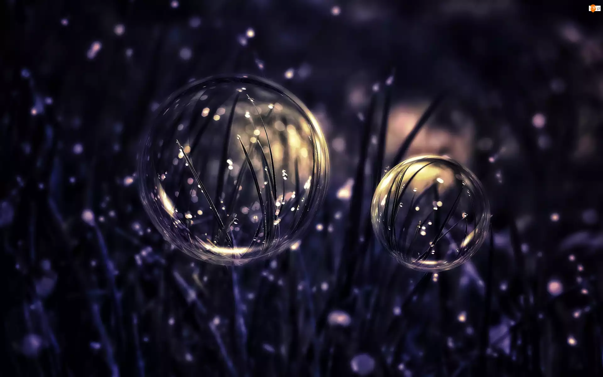 Makro, Krople, Baloniki, Trawa, Deszcz