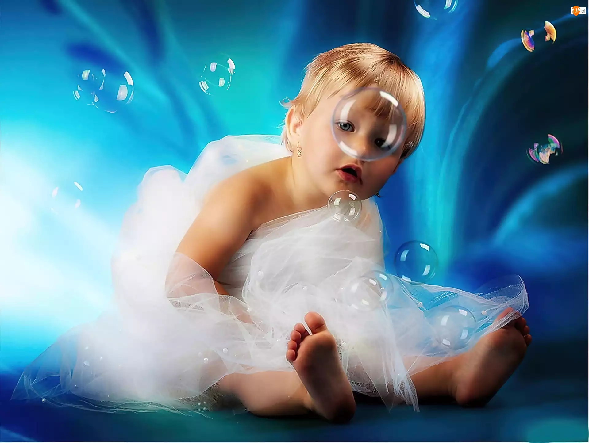 Mała, Zabawa, Dziewczynka, Bąbelki