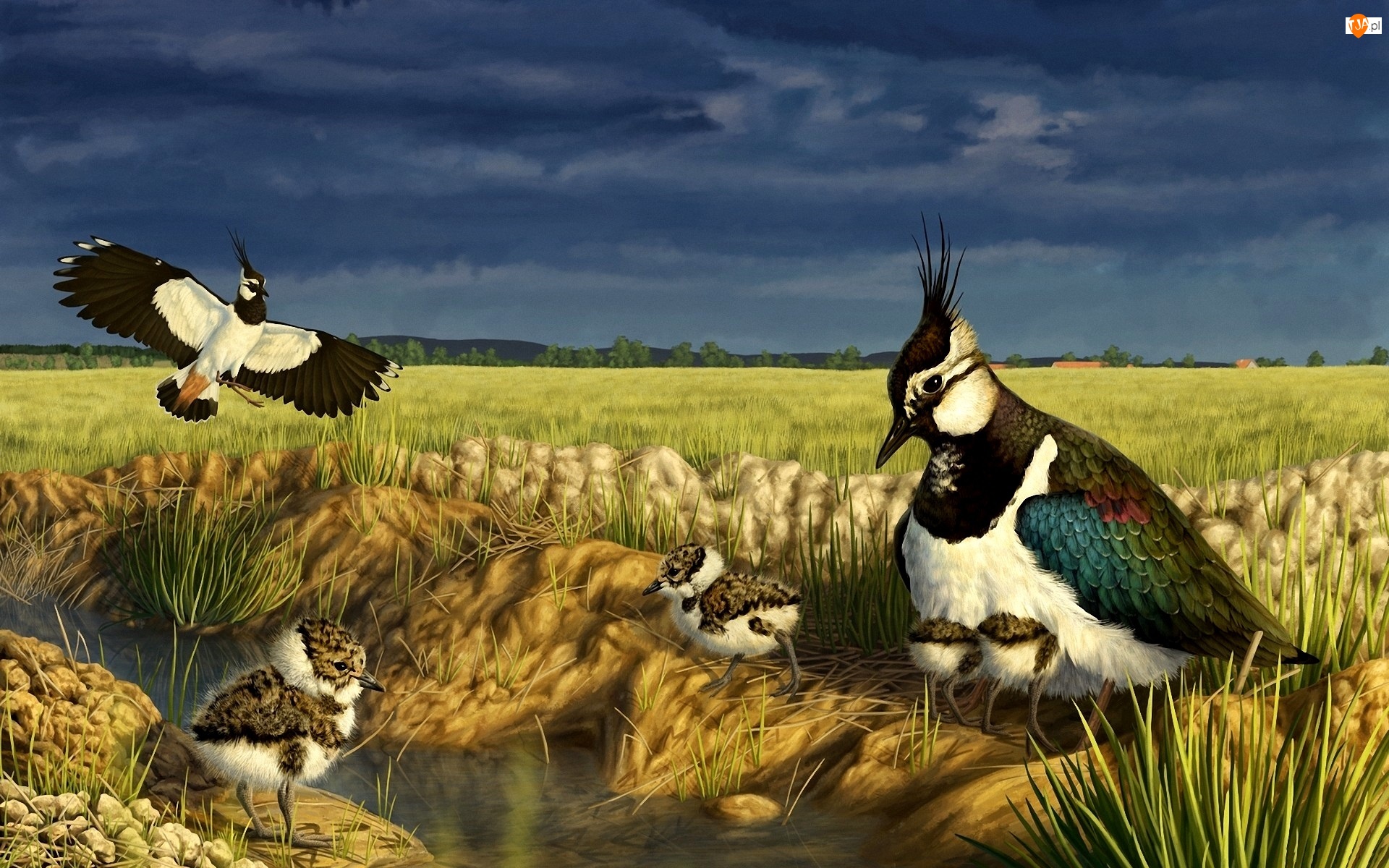 Malarstwo, Krajobraz, Ptaki, Pisklęta