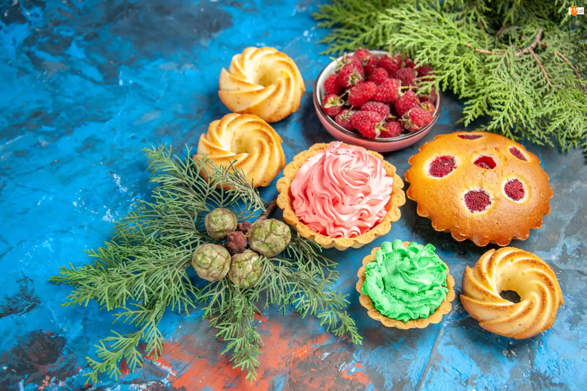 Maliny, Szyszki, Ciasteczka, Babeczki, Gałązki