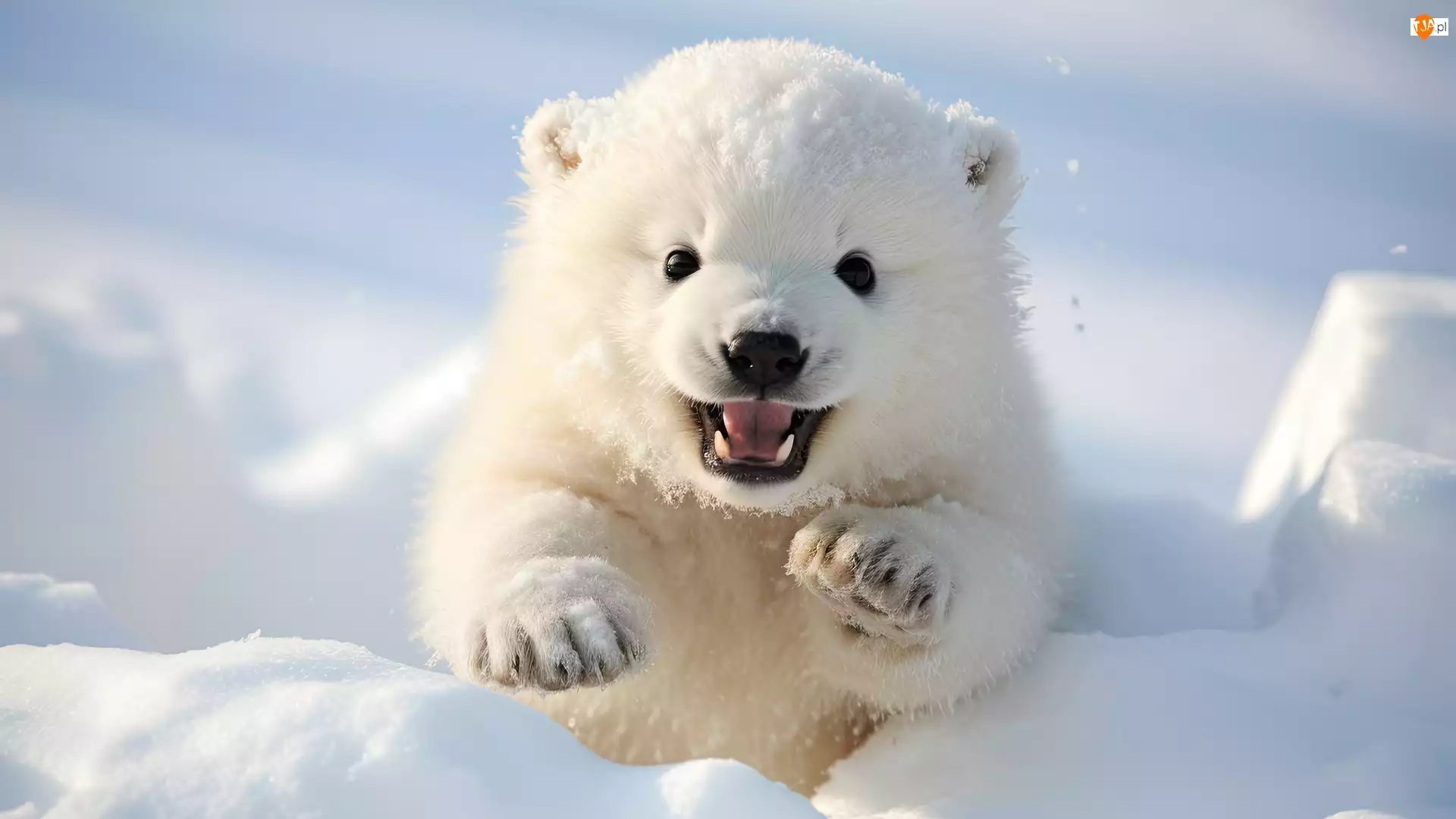 Mały, Grafika, Polarny, Niedźwiadek, Śnieg