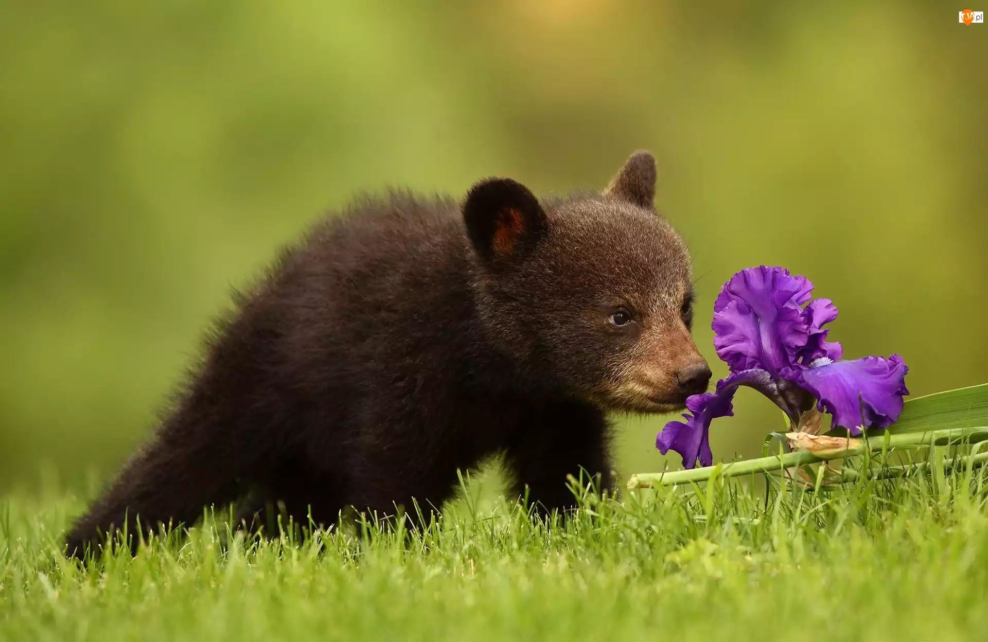 Mały, Trawa, Niedźwiadek, Kwiatek