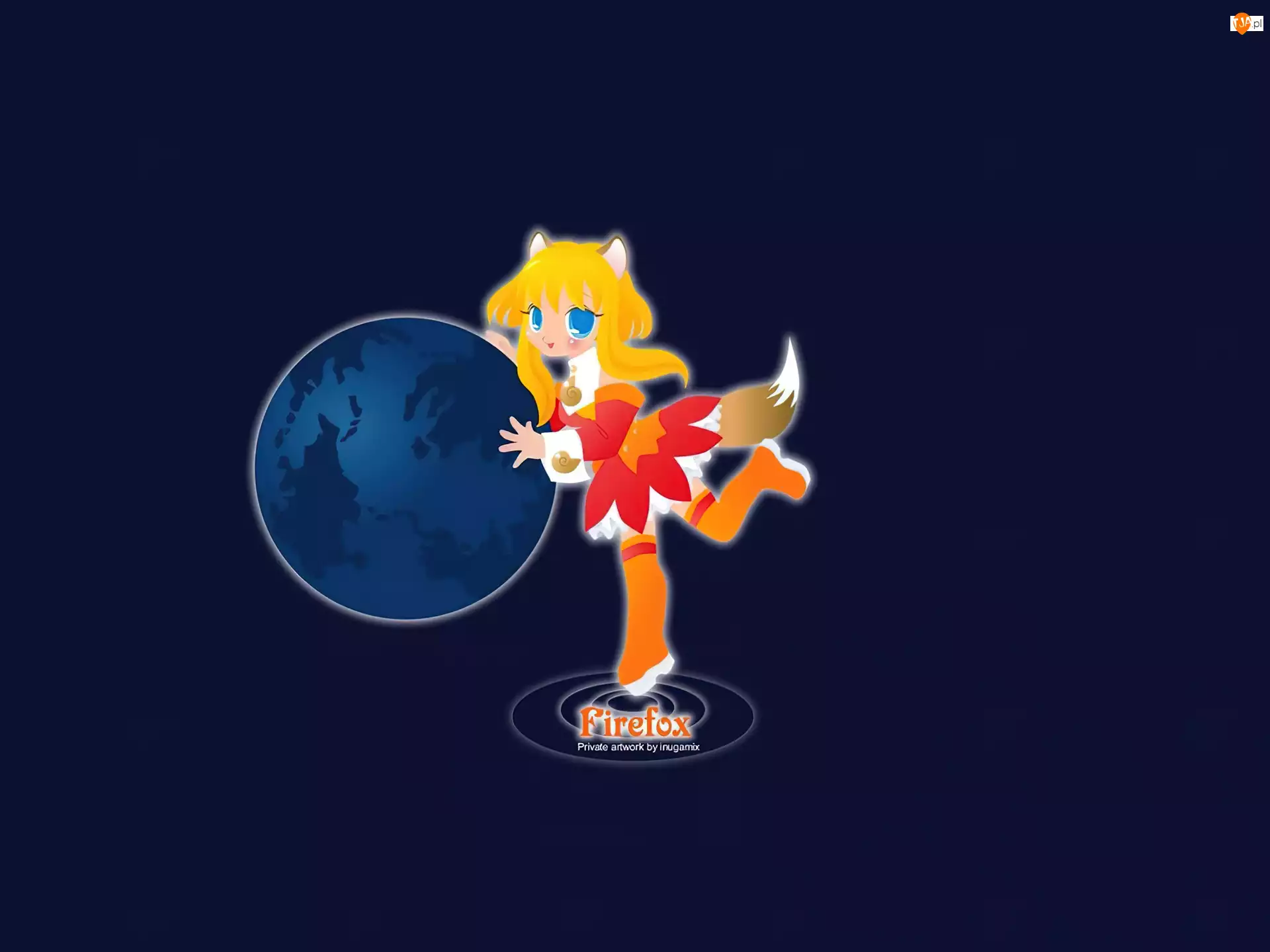 ziemia, FireFox, lis, grafika, manga, kobieta