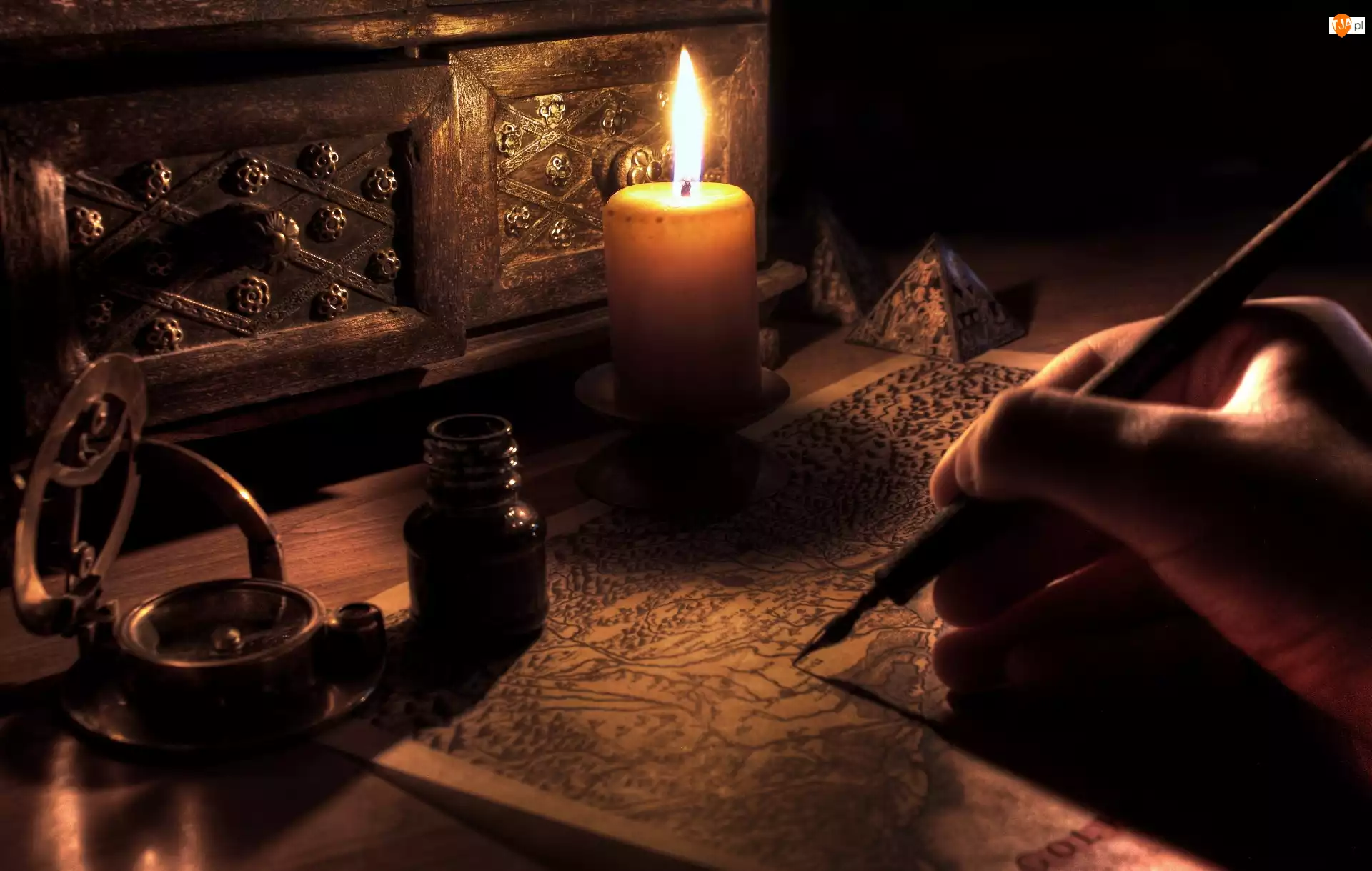 Świeca, Tusz, Mapa, Kompozycja, Pióro