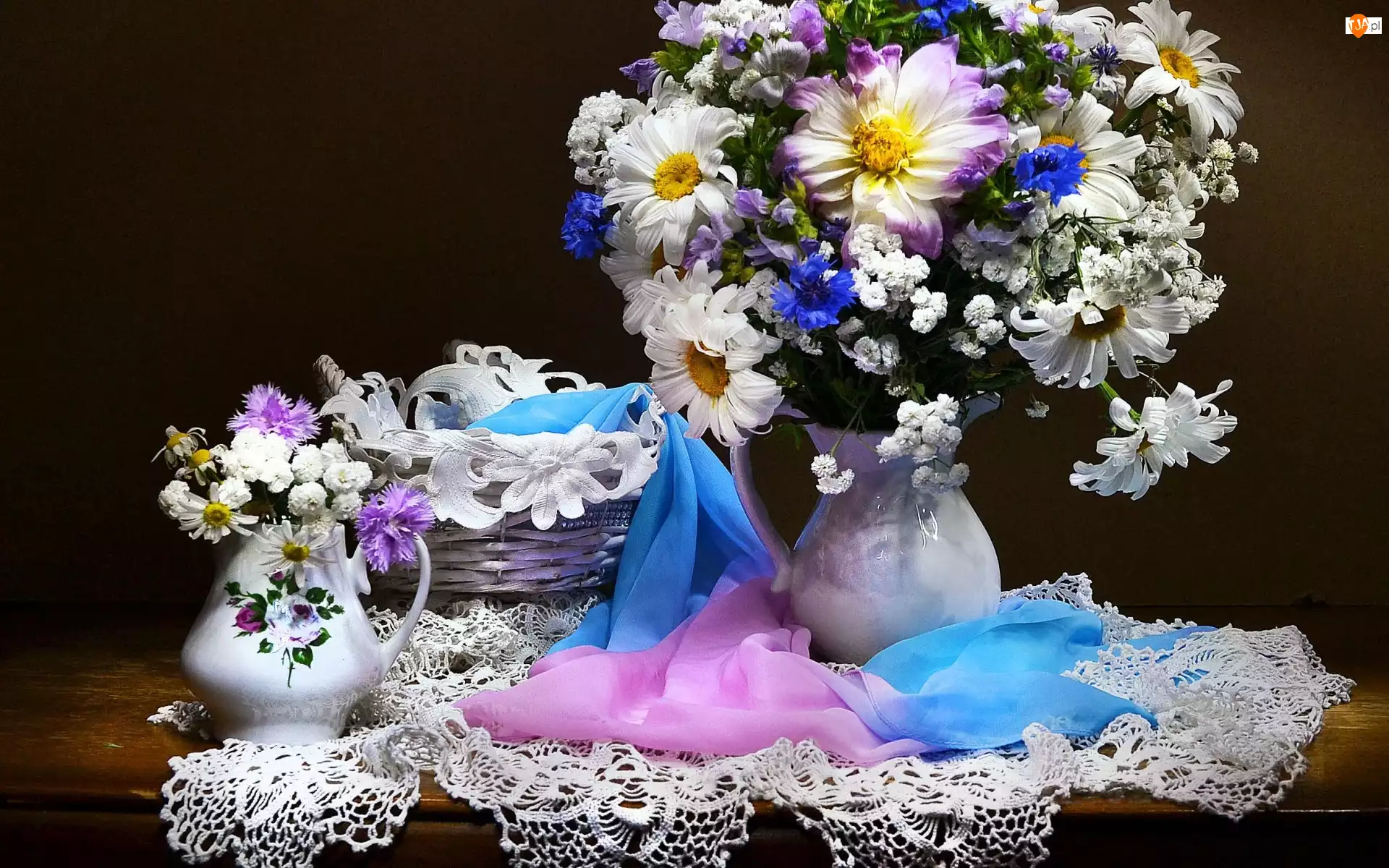 Bukiet, Kompozycja, Chabry, Serweta, Margarytki, Gęsiówka