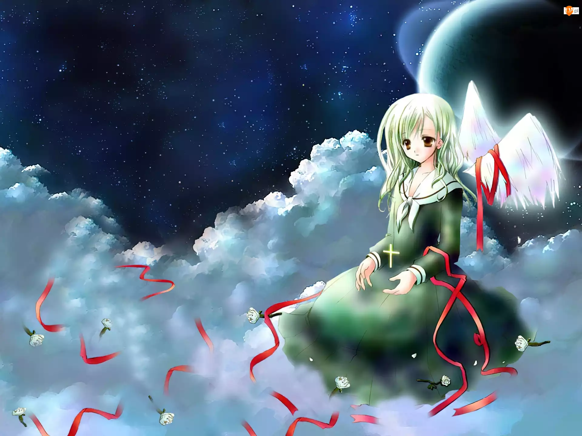 Maria - Sama Ga Miteru, kwiaty, kobieta, kokardy