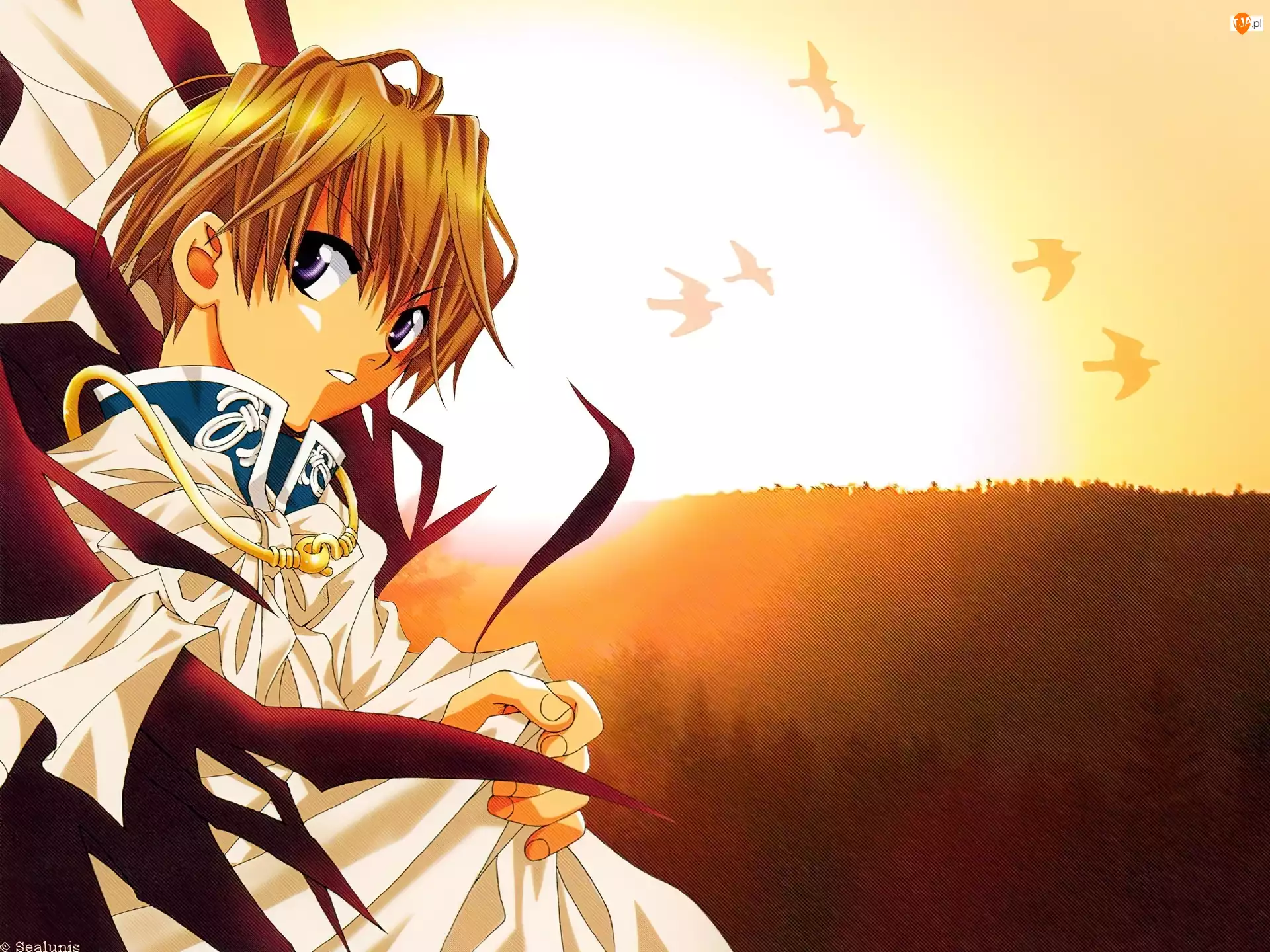 ptaki, Matantei Loki Ragnarok, slońce, człowiek