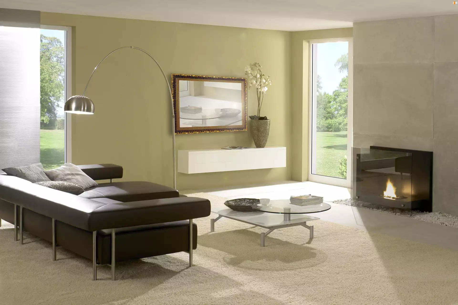 Meble, Salon, Kominek