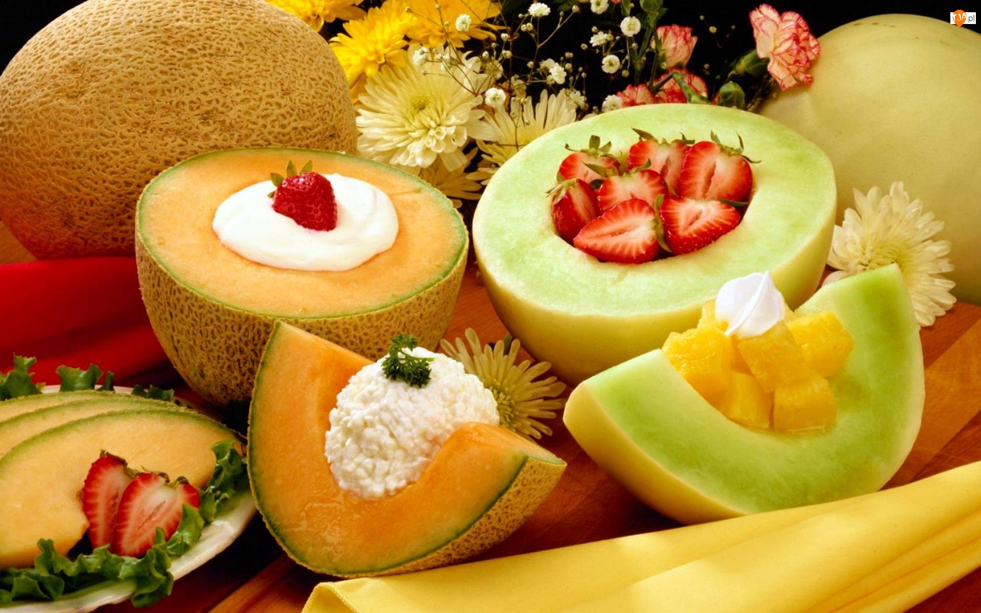Melon, Kwiatki, Truskawki, Ananas