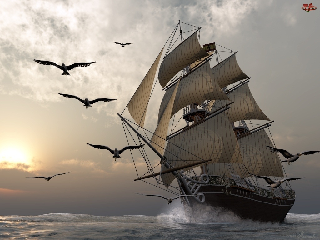 Mewy, Morze, Żaglowiec