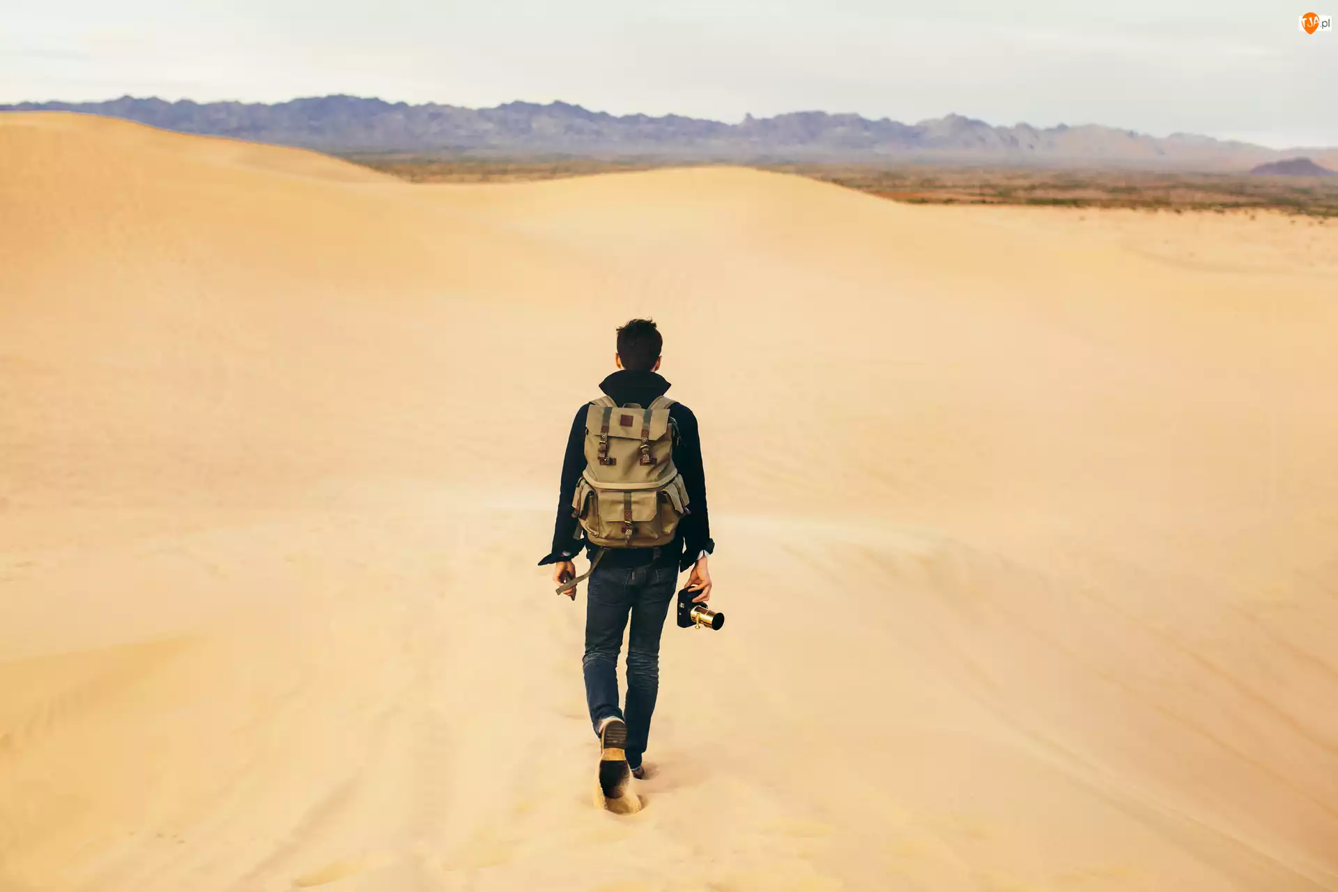 Pustynia, Aparat fotograficzny, Mężczyzna, Plecak