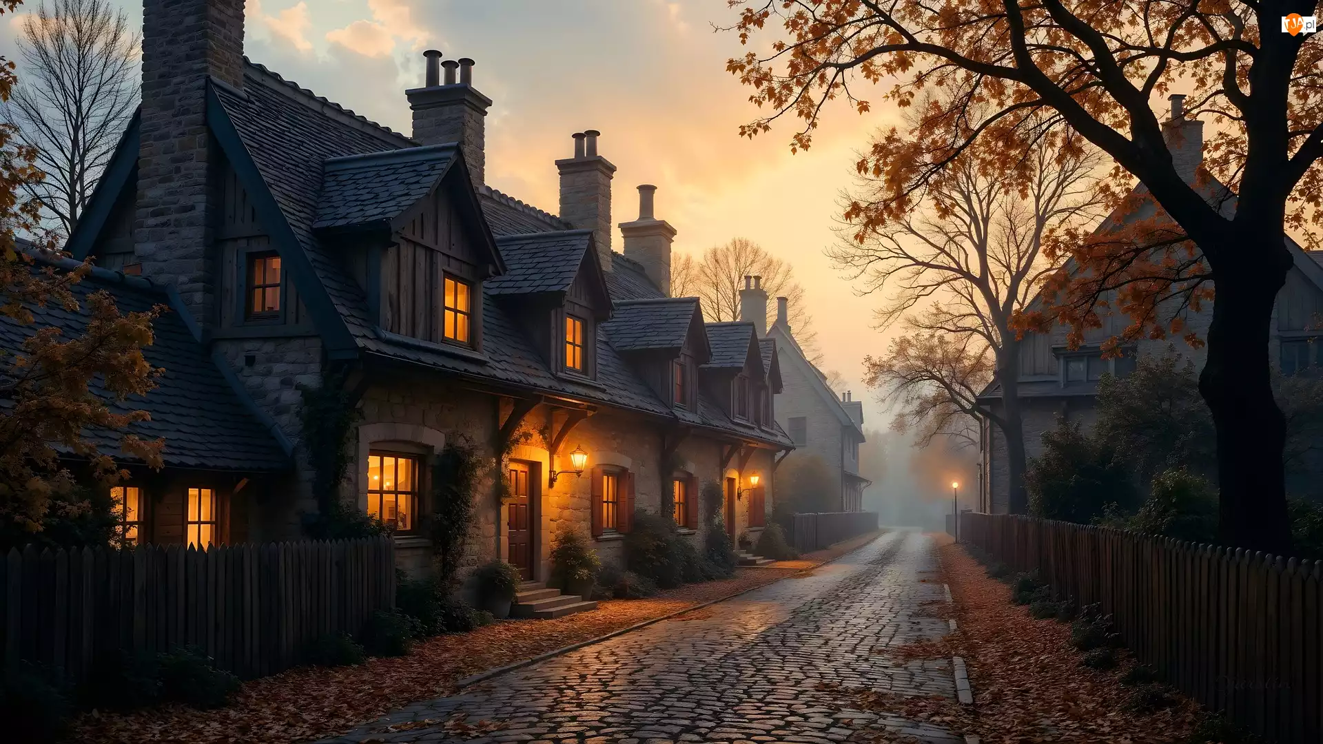 Tagi: Mgła Grafika AI Domy Droga Jesień