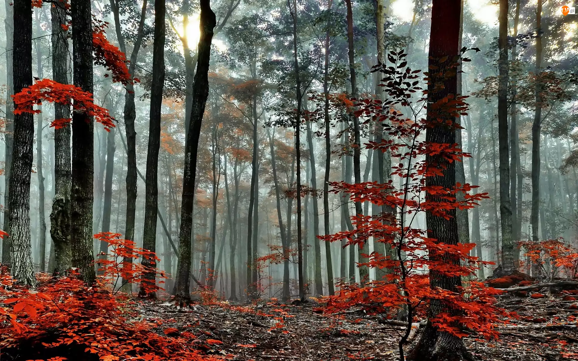 Mgła, Jesień, Przebijające, Las, Światło
