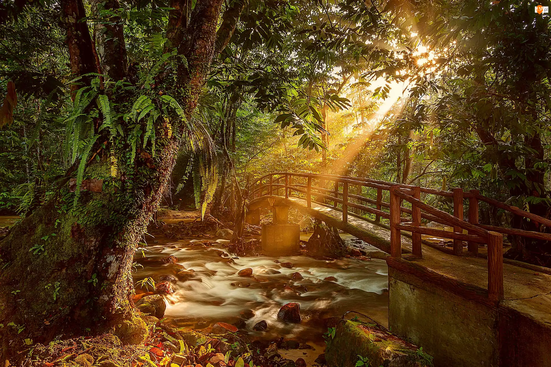 Mgła, Las, Most, Rzeka, Przebijające Światło