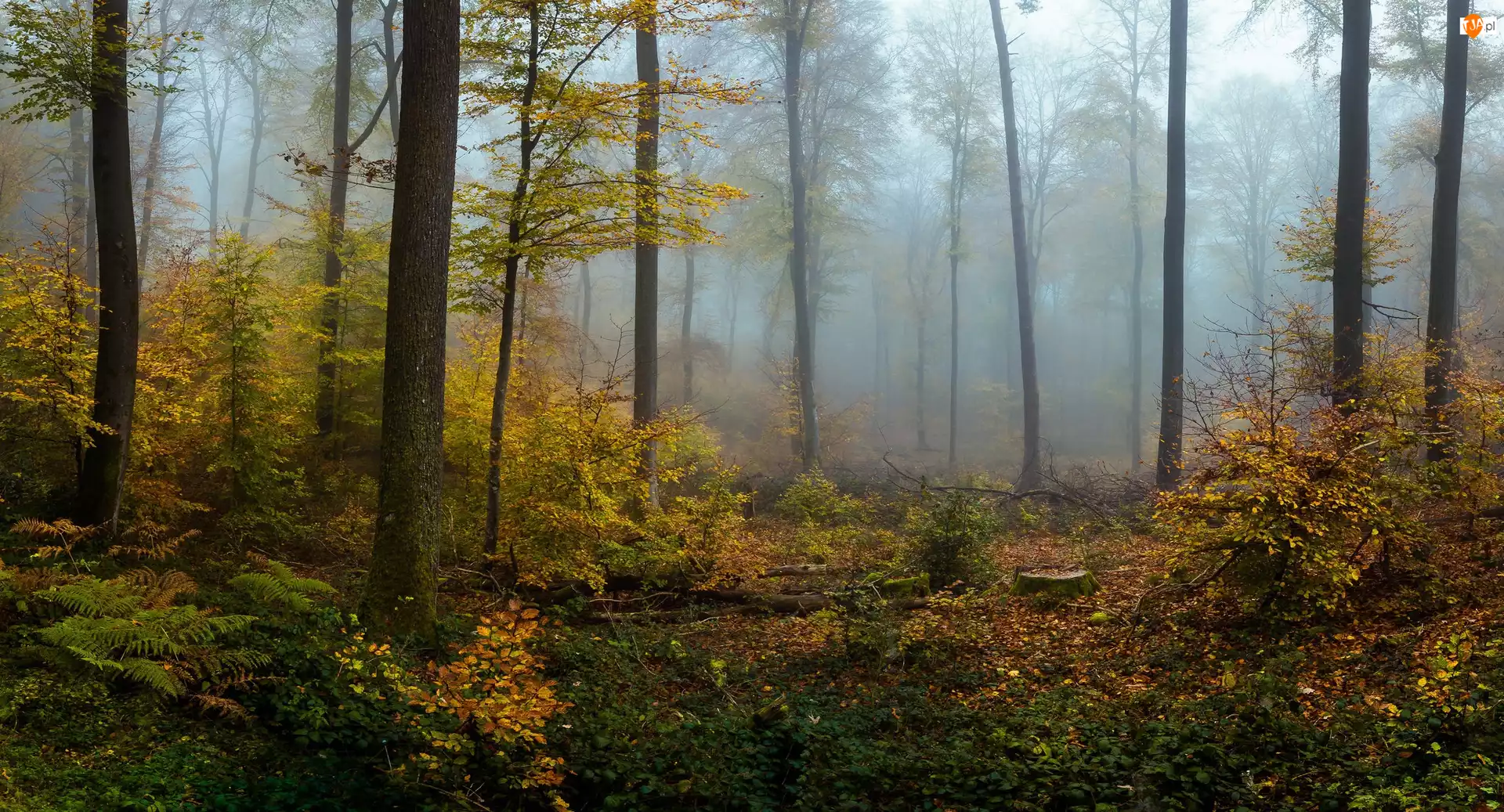 Rośliny, Jesień, Drzewa, Las, Mgła