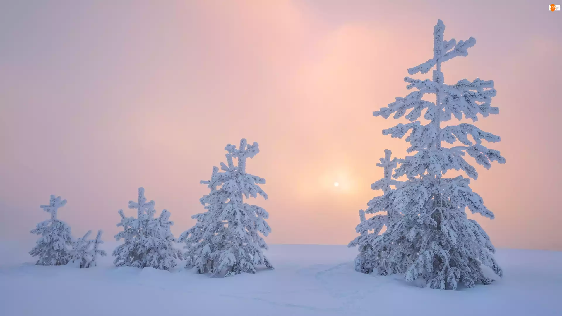 Mgła, Zima, Ośnieżone, Drzewa