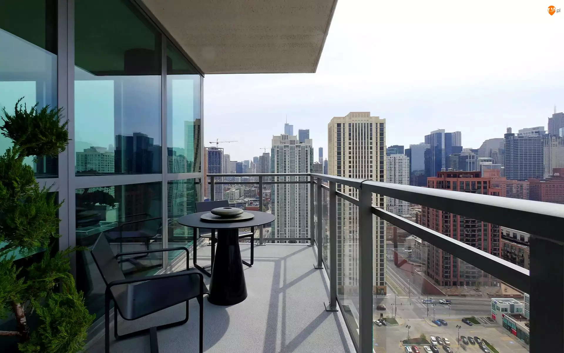 Miasta, Budynek, Wieżowce, Balkon, Panorama