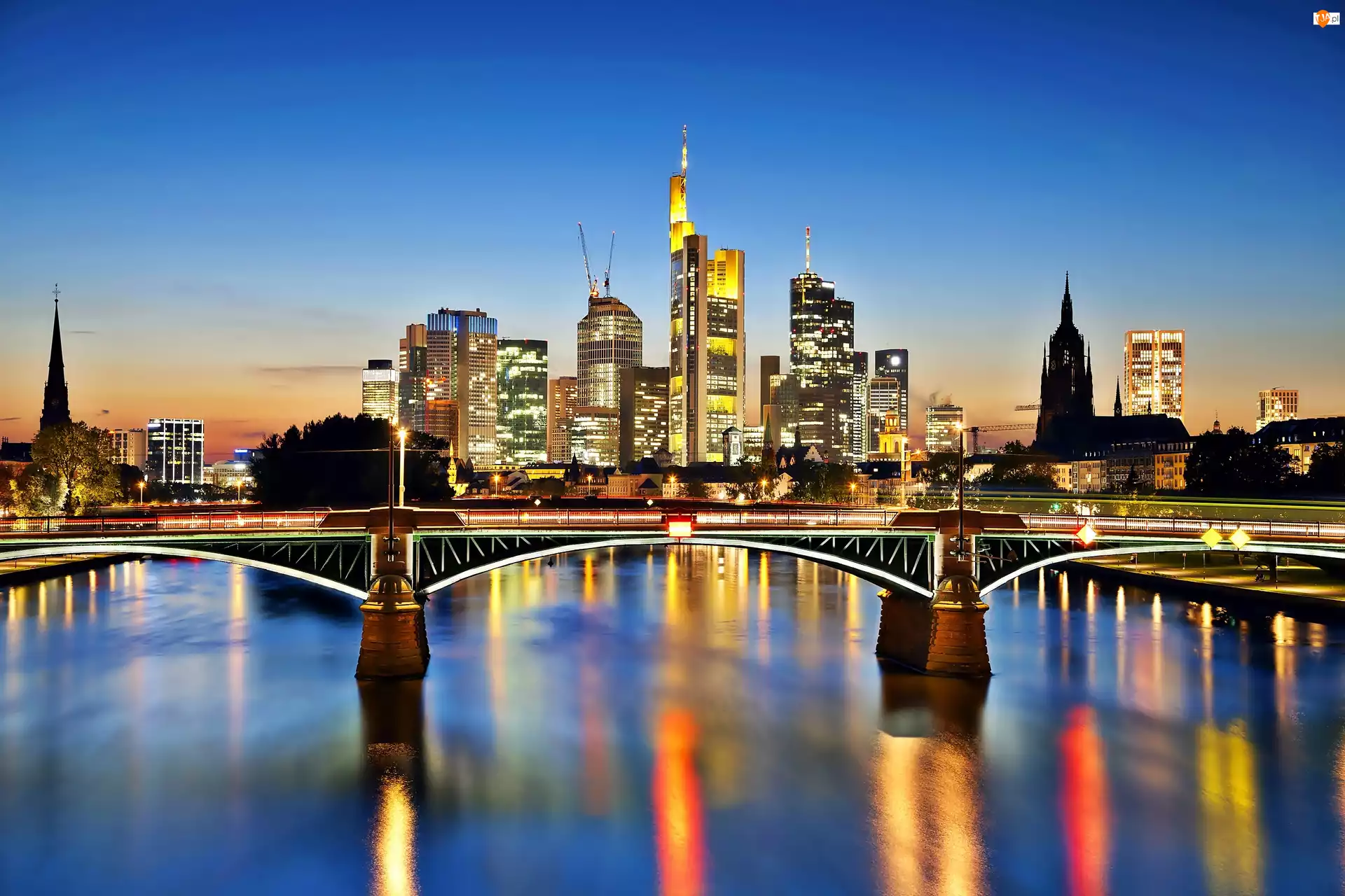 Miasta, Frankfurt, Men, Rzeka, Nocą, Most, Panora