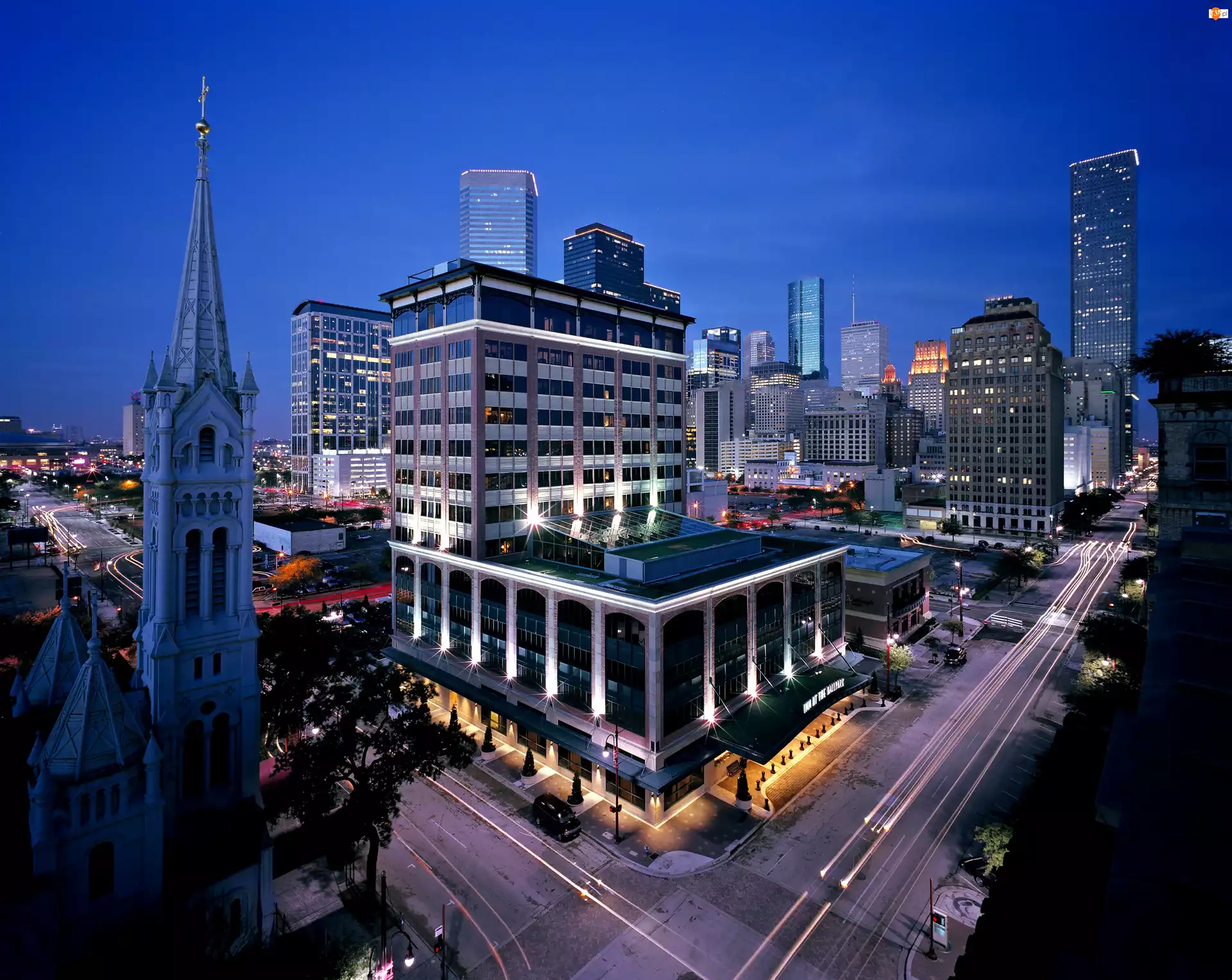 Miasta, Houston, Chmur, Drapacze, Nocą, Kościół, Fragment