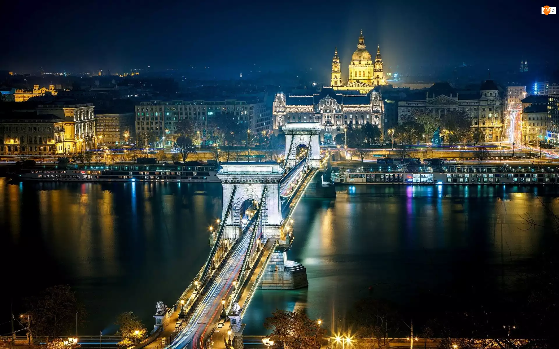Miasta, Noc, Most, Dunaj, Rzeka, Węgry, Panorama, Budapeszt
