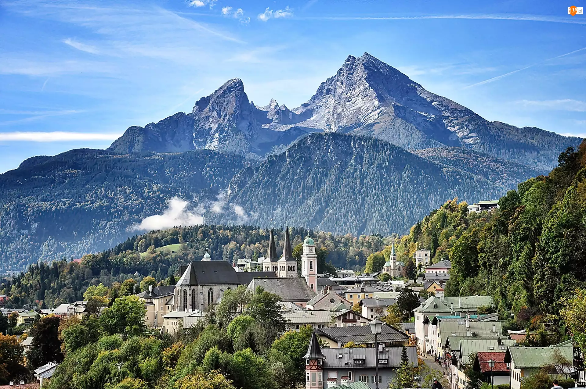 Miasteczka, Lasy, Berchtesgaden, Mgła, Panorama,