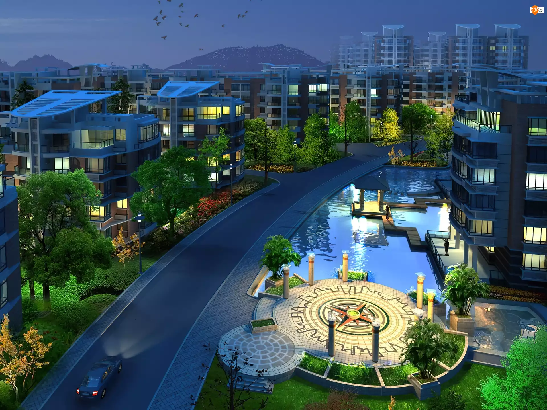 Następna >>Ulica, Belgia, Kanał, Drzewa, Miasto, Rzeka, Ławka, Domy