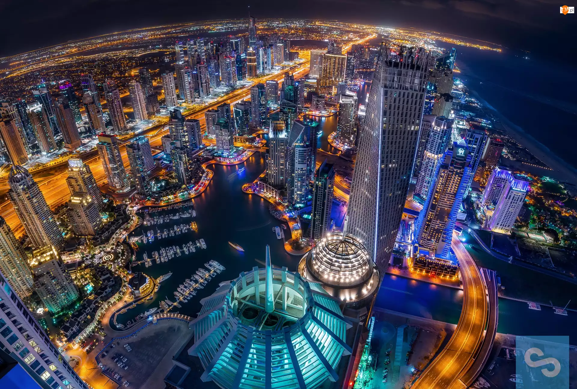 Miasto nocą, Z lotu ptaka, Dubaj, Widnokrąg