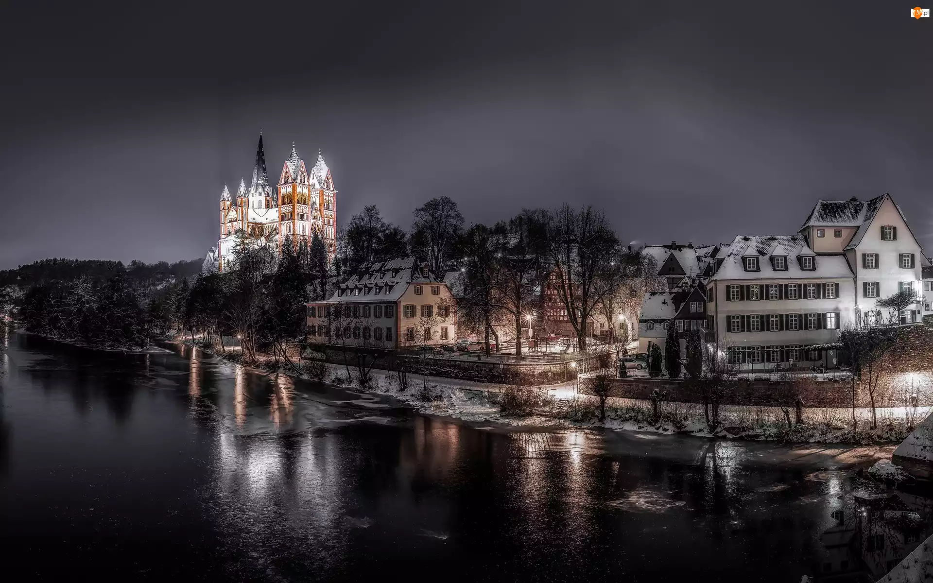Lahn, Niemcy, Miasto nocą, Limburg, Rzeka