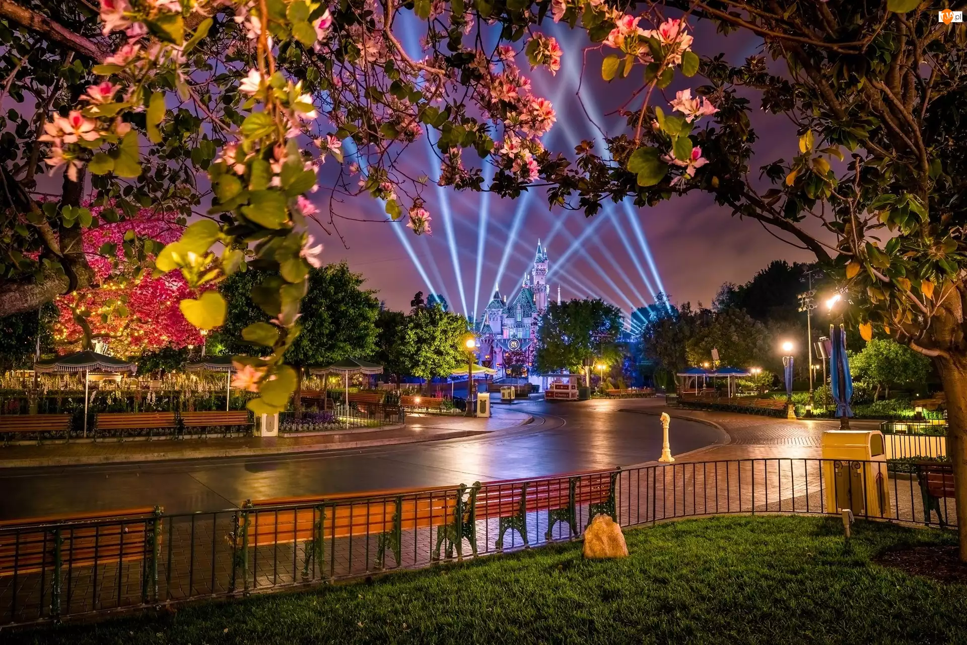 Miasto nocą, Disneyland, Ulica, Światła