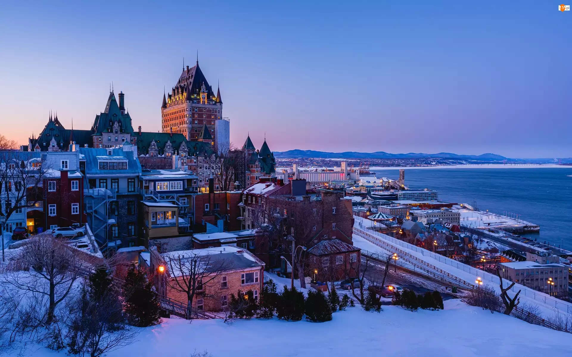 Domy, Zima, Miasto Quebec, Kanada, Zamek Chateau Frontenac