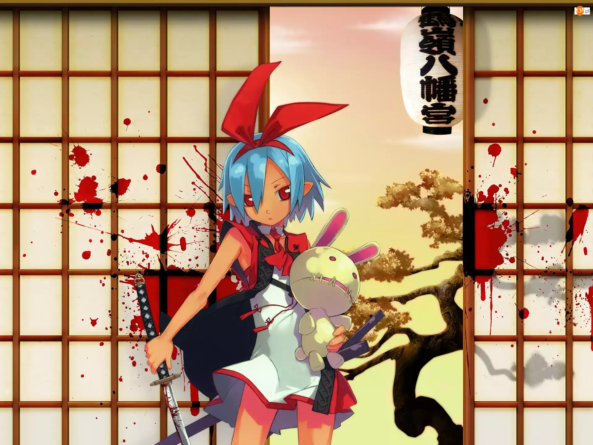 miecz, drzewo, Disgaea, szyby, królik, krew