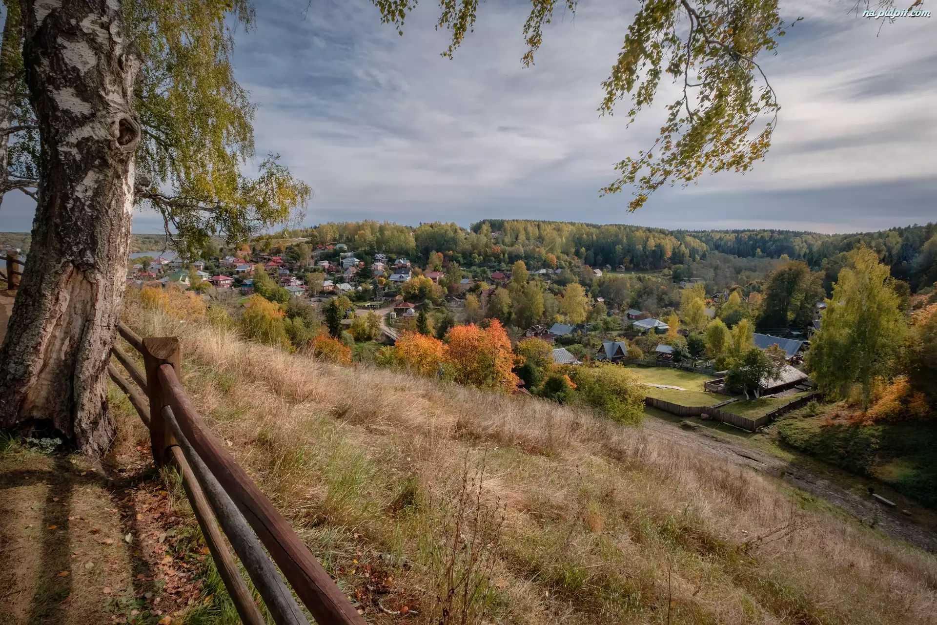 Domy, Drzewo, Rosja, Miejscowość Plyos, Obwód iwanowski, Ogrodzenie, Brzoza