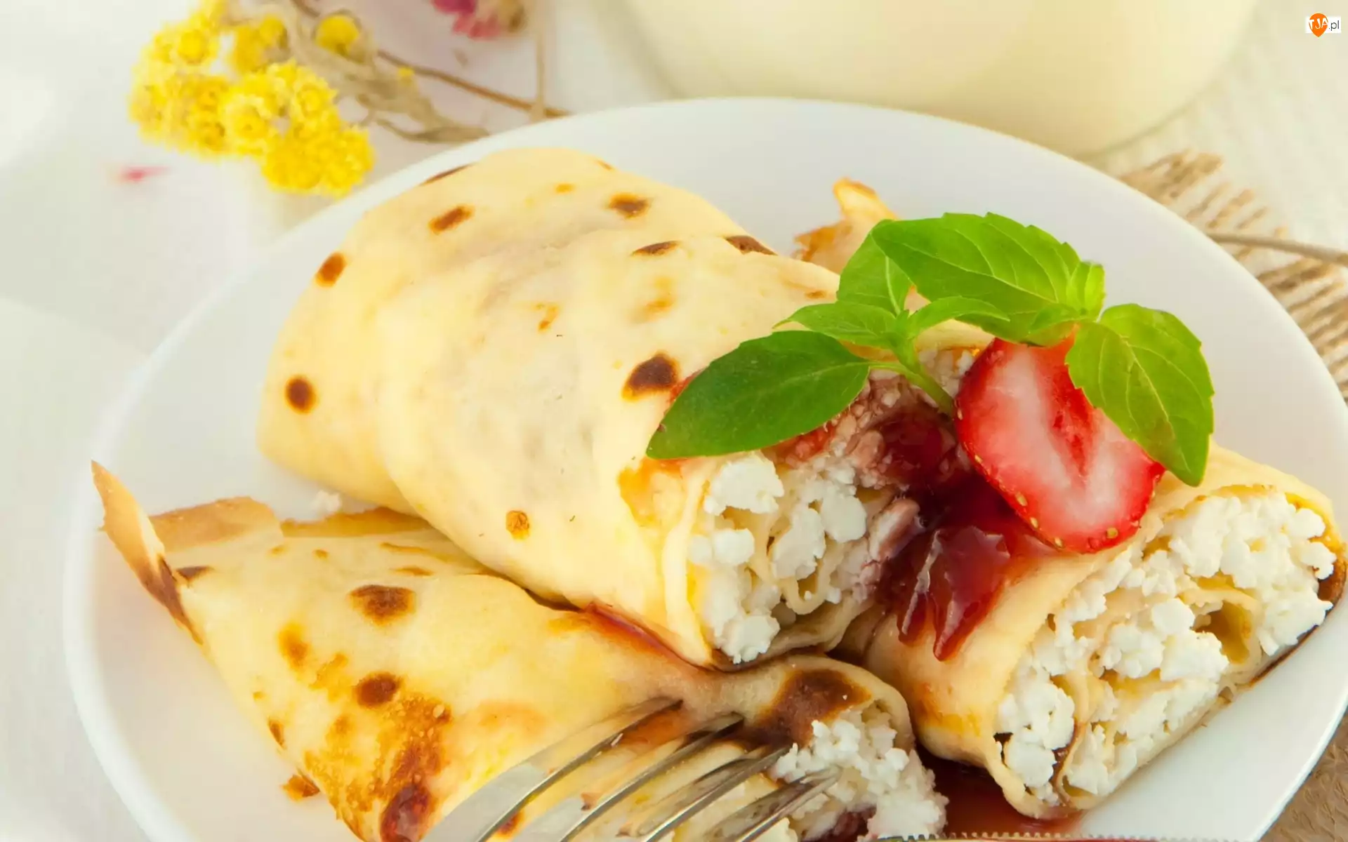 Mięty, Naleśniki, Truskawki, Twaróg, Listki
