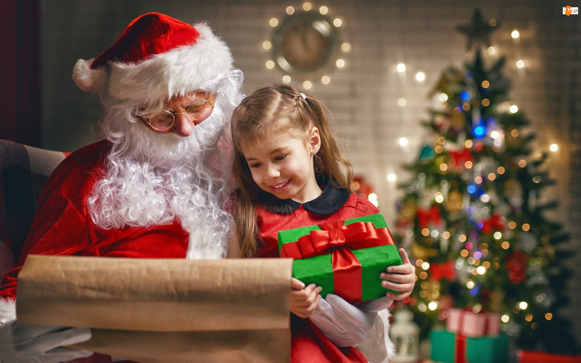 Choinka, Mikołaj, List, Dziewczynka, Prezent