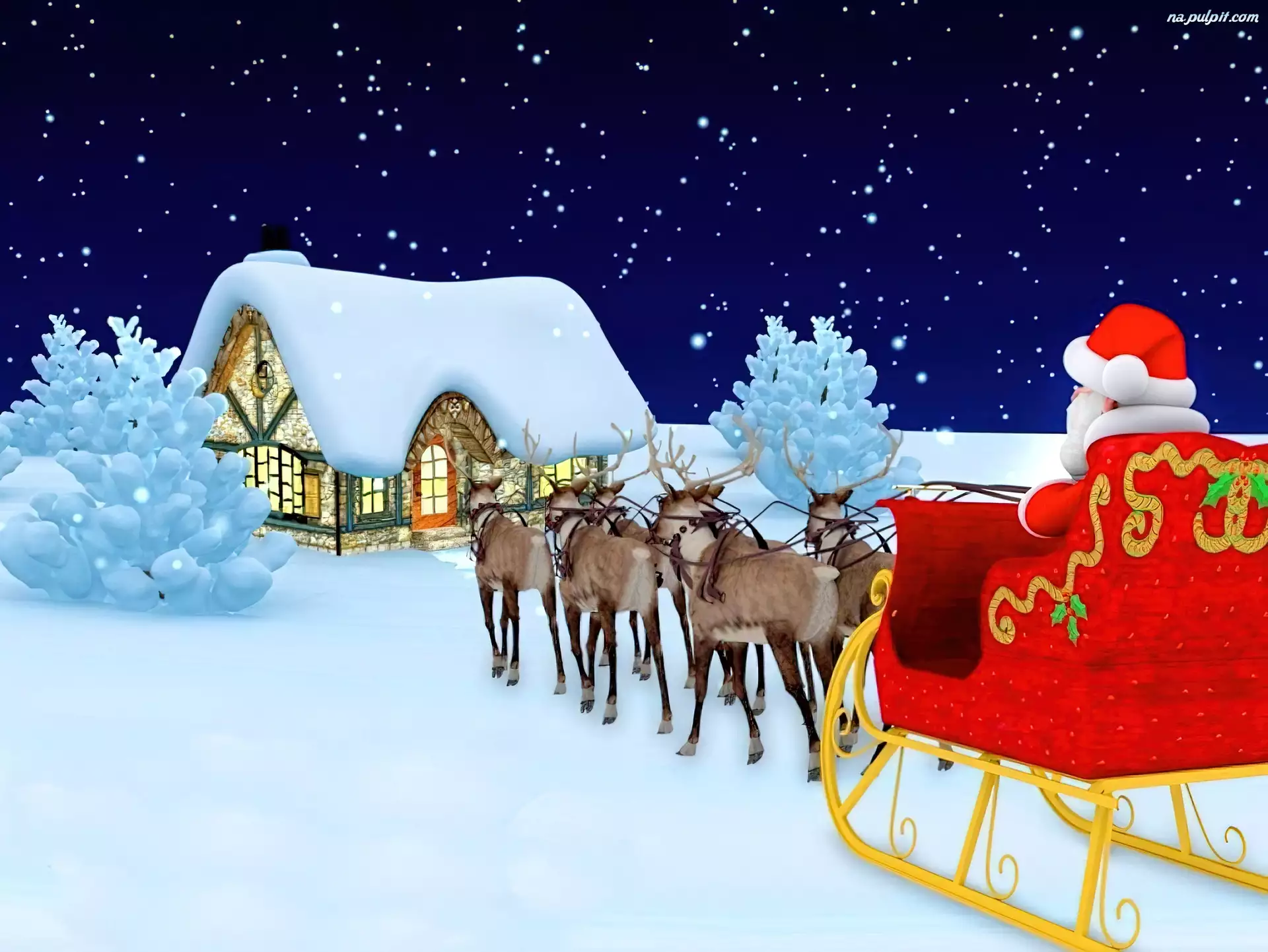 Mikołaj, Zima, Sanie, Domek