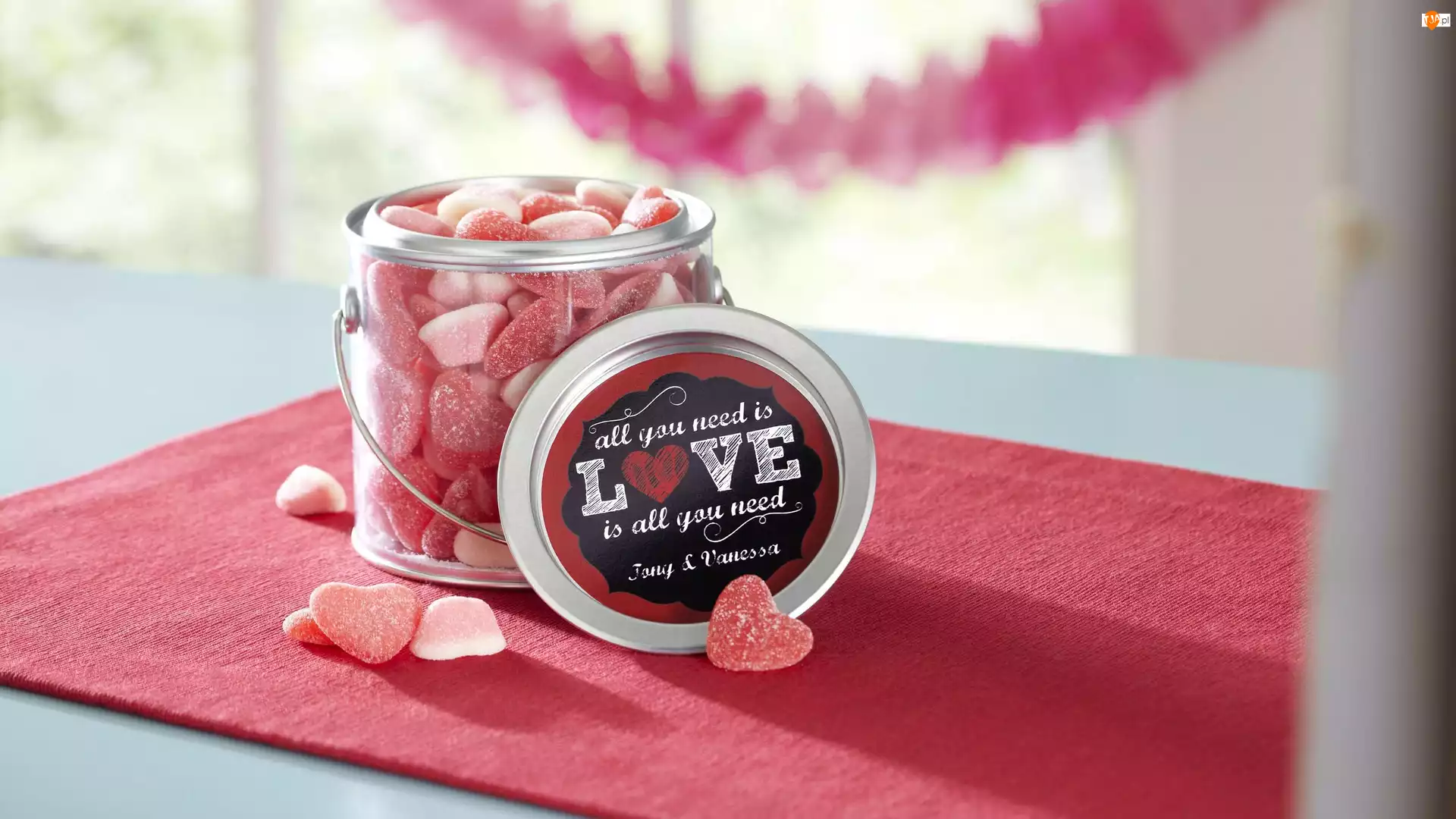 Miłość, Pojemnik, Serca, Żelki, Czerwony