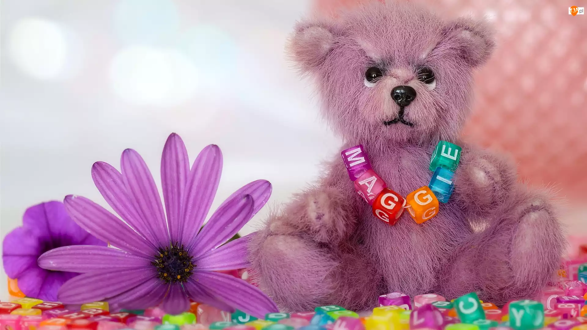 Naszyjnik, Stokrotka afrykańska, Miś, Pluszowy, Kwiat