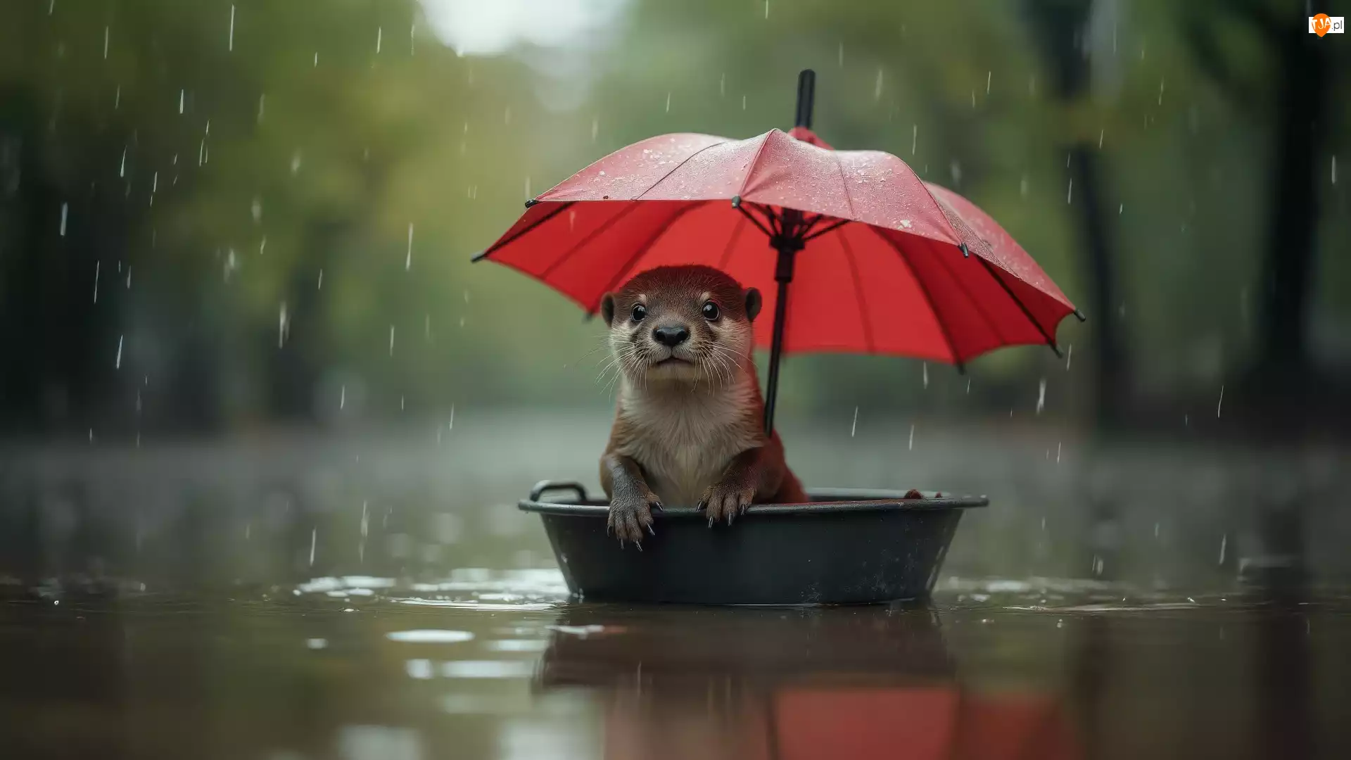 Deszcz, Miska, Parasol, Wydra, Rzeka