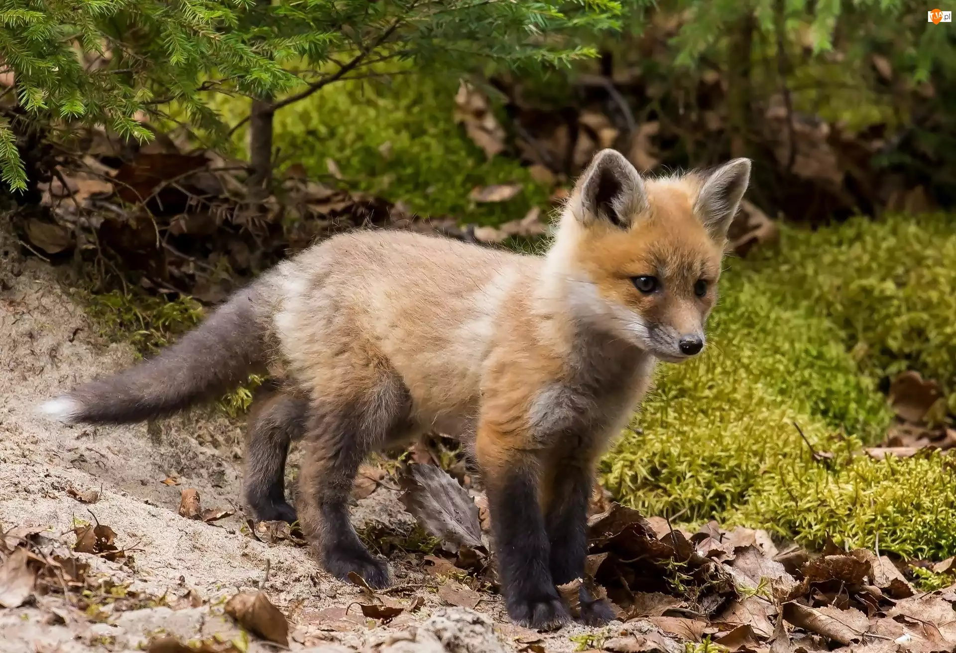 Młody, Słodki, Liście, Las, Lisek, Drzewa