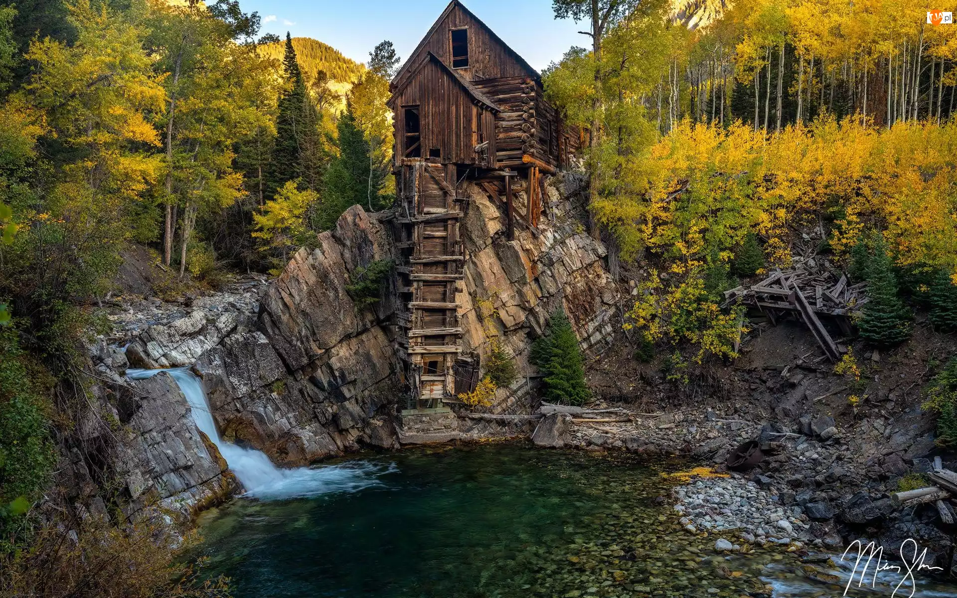 Młyn, Las, Rzeka, Drzewa, Stan Kolorado, Crystal