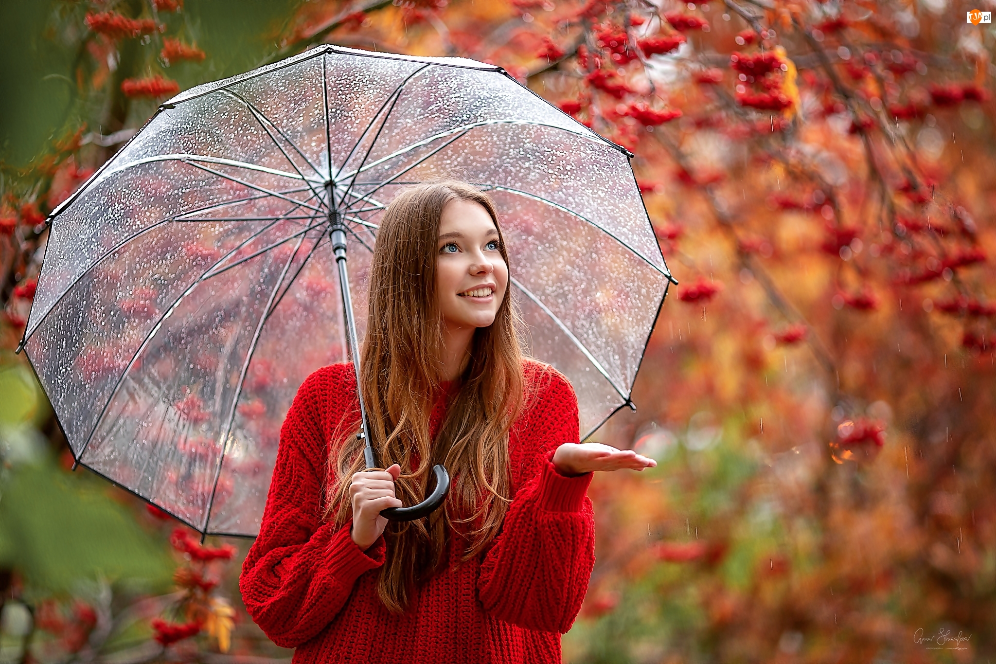 Sweter, Deszcz, Czerwony, Dziewczyna, Parasolka