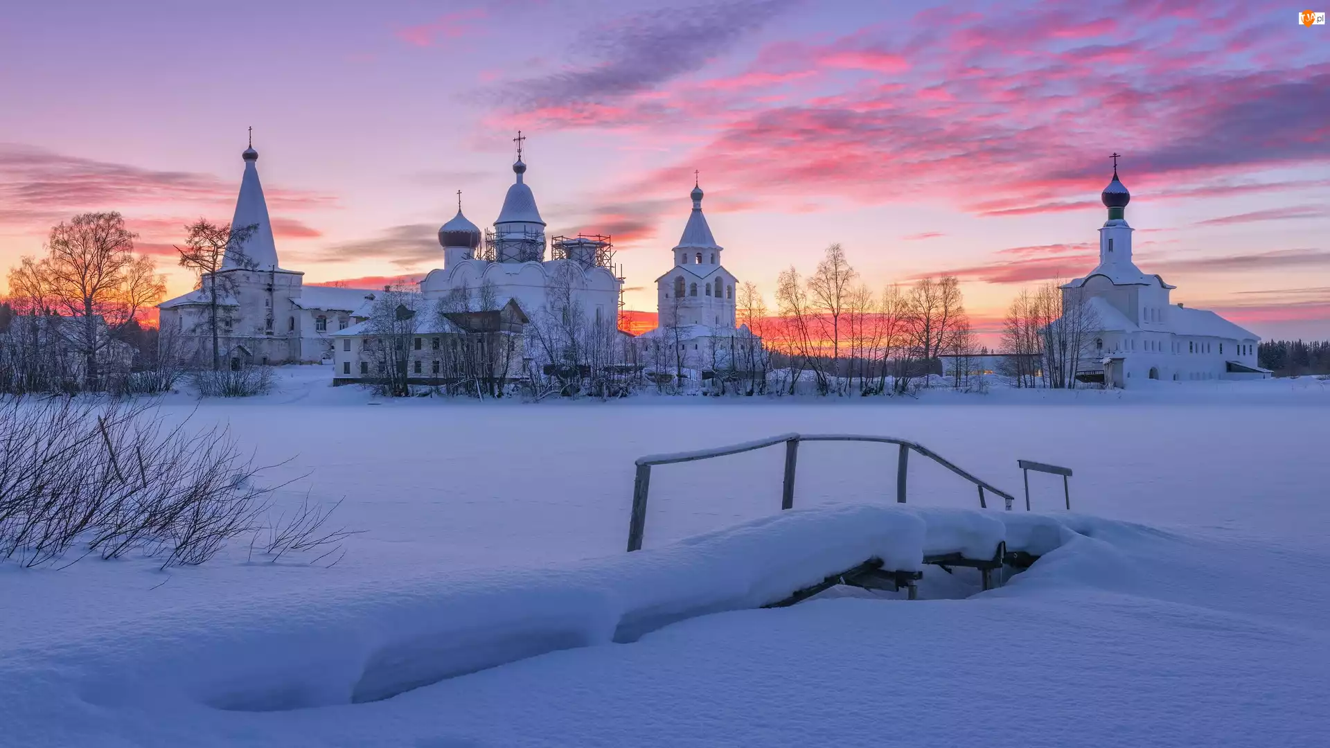 Obwód archangielski, Rosja, Cerkiew, Klasztor, Zima, Antoniewo-Sijski Monaster Trójcy Świętej