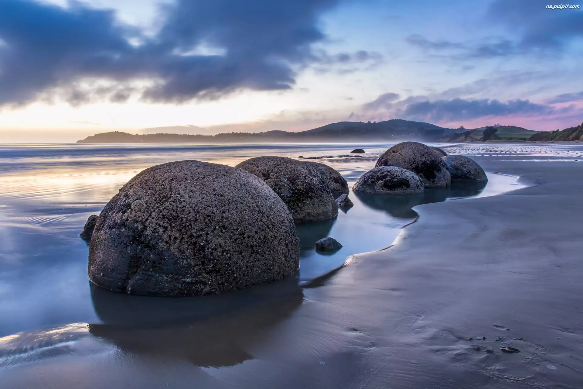 Wybrzeże, Zatoka Waikawau Bay, Głazy, Nowa Zelandia, Kamienie, Region Waikato