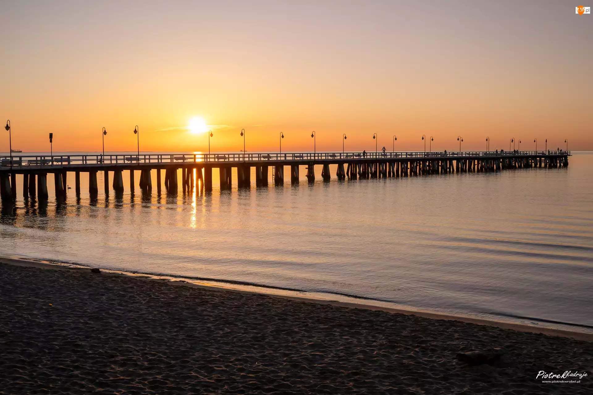 Morze Bałtyckie, Zachód słońca, Plaża, Polska, Molo, Gdynia
