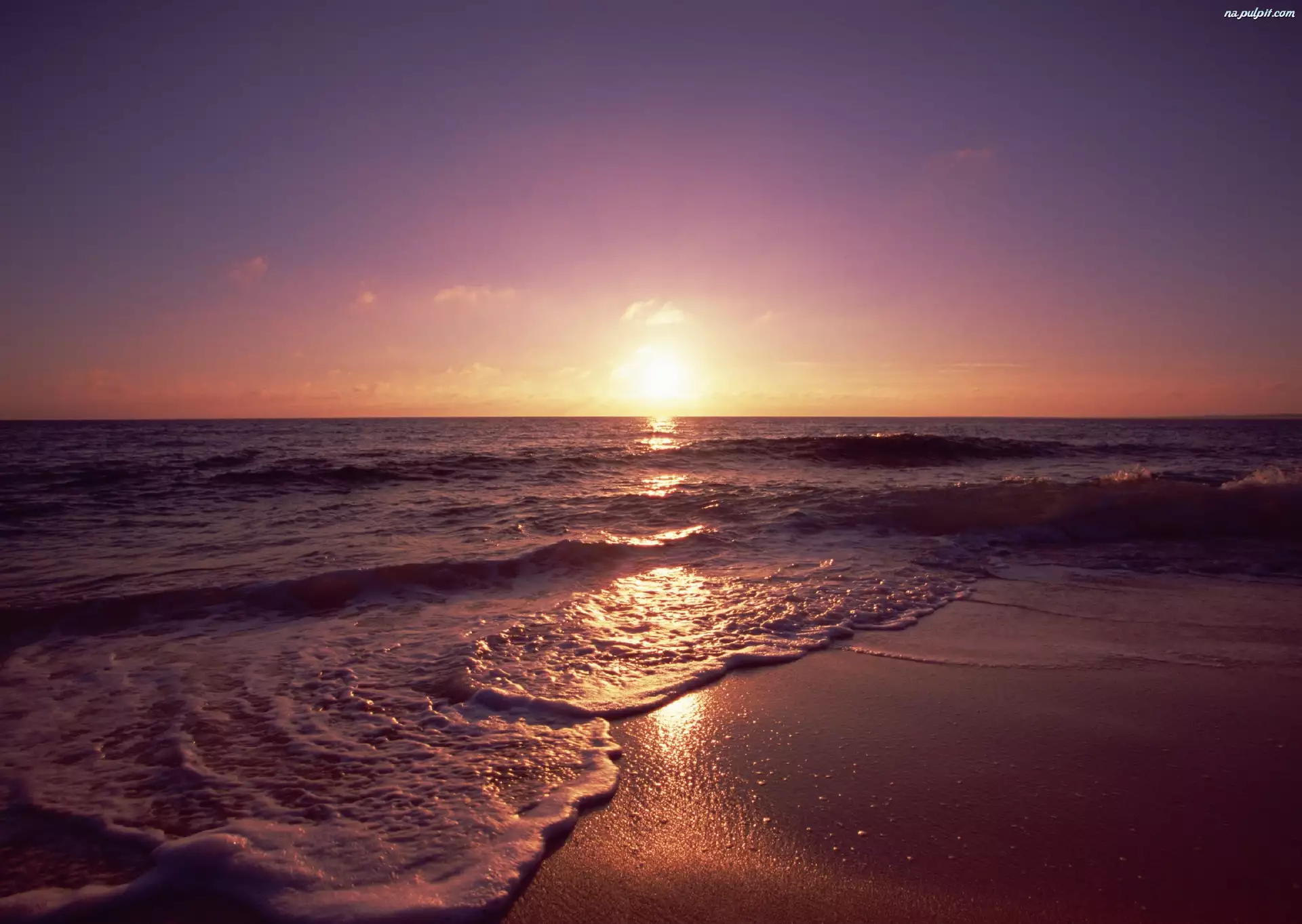 Morze, Fioletowy, Zachód, Odcień, Słońca, Pla�