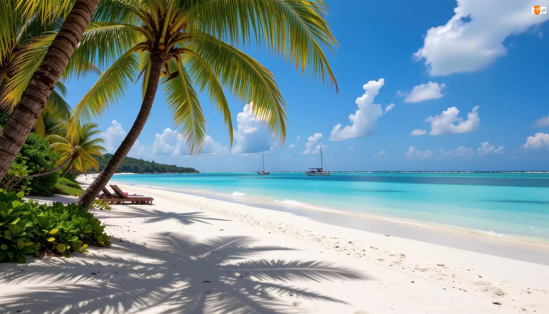 Morze, Grafika AI, Palmy, Plaża, Tropiki
