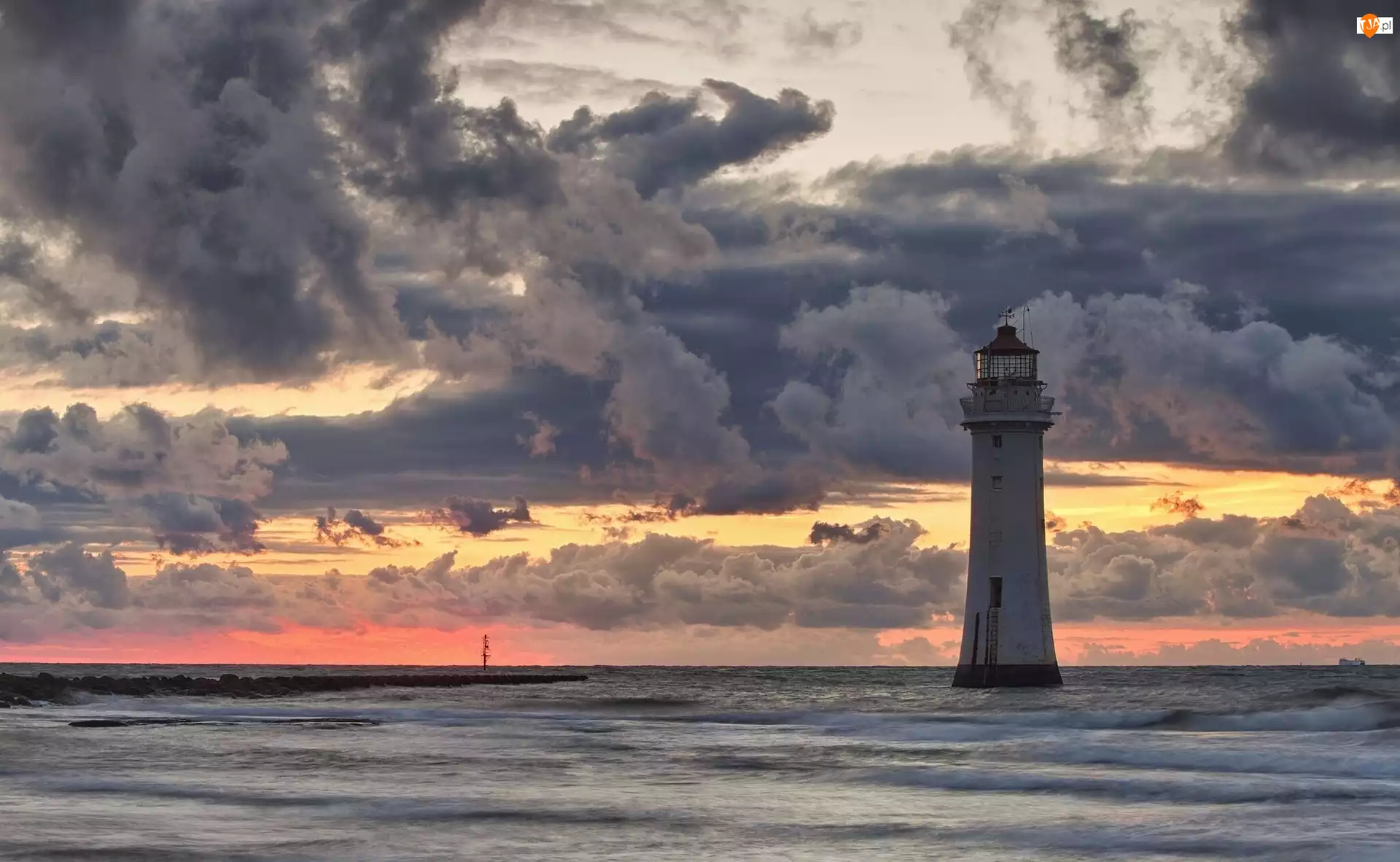 Morze, Latarnia, Niebo, Morska, Chmury