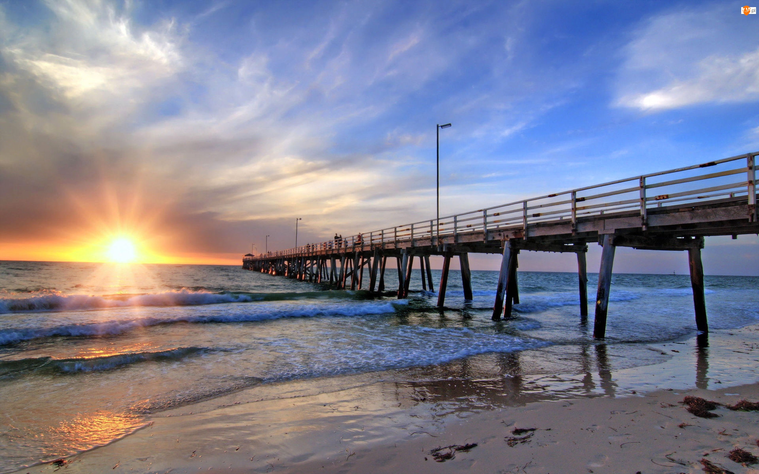 Morze, Molo, Zachód Słońca