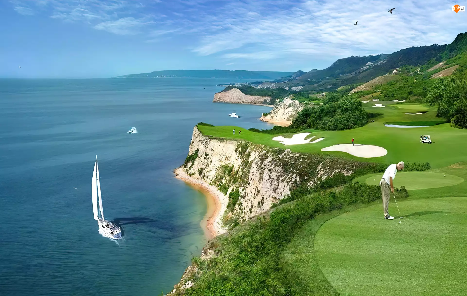 Morze, Pole, Żaglówka, Golfowe, Klif
