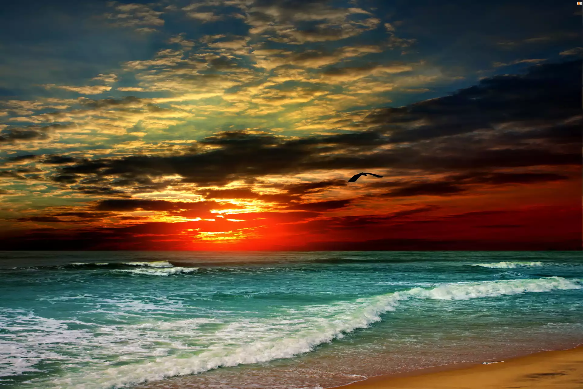 Morze, Ptak, Zachód, Słońca